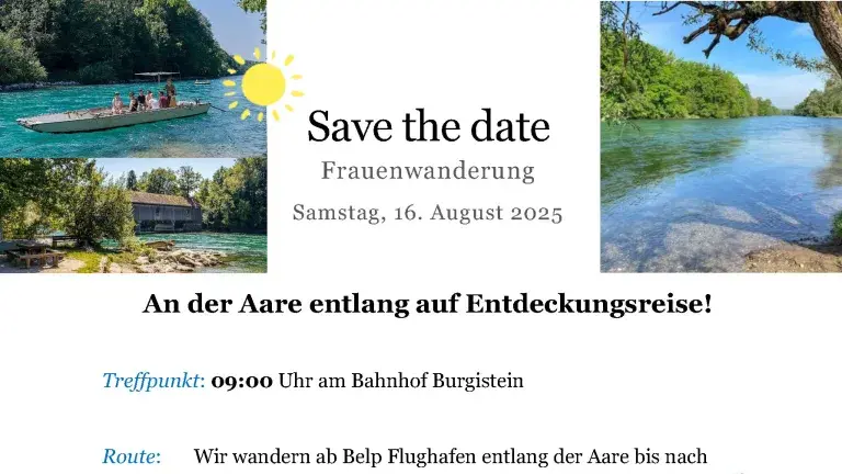 Wir wandern ab Belp Flughafen entlang der Aare bis nach Bern zum Bärenpark – wer mag kann noch weiter bis zum wunderschönen Berner Rosengarten.